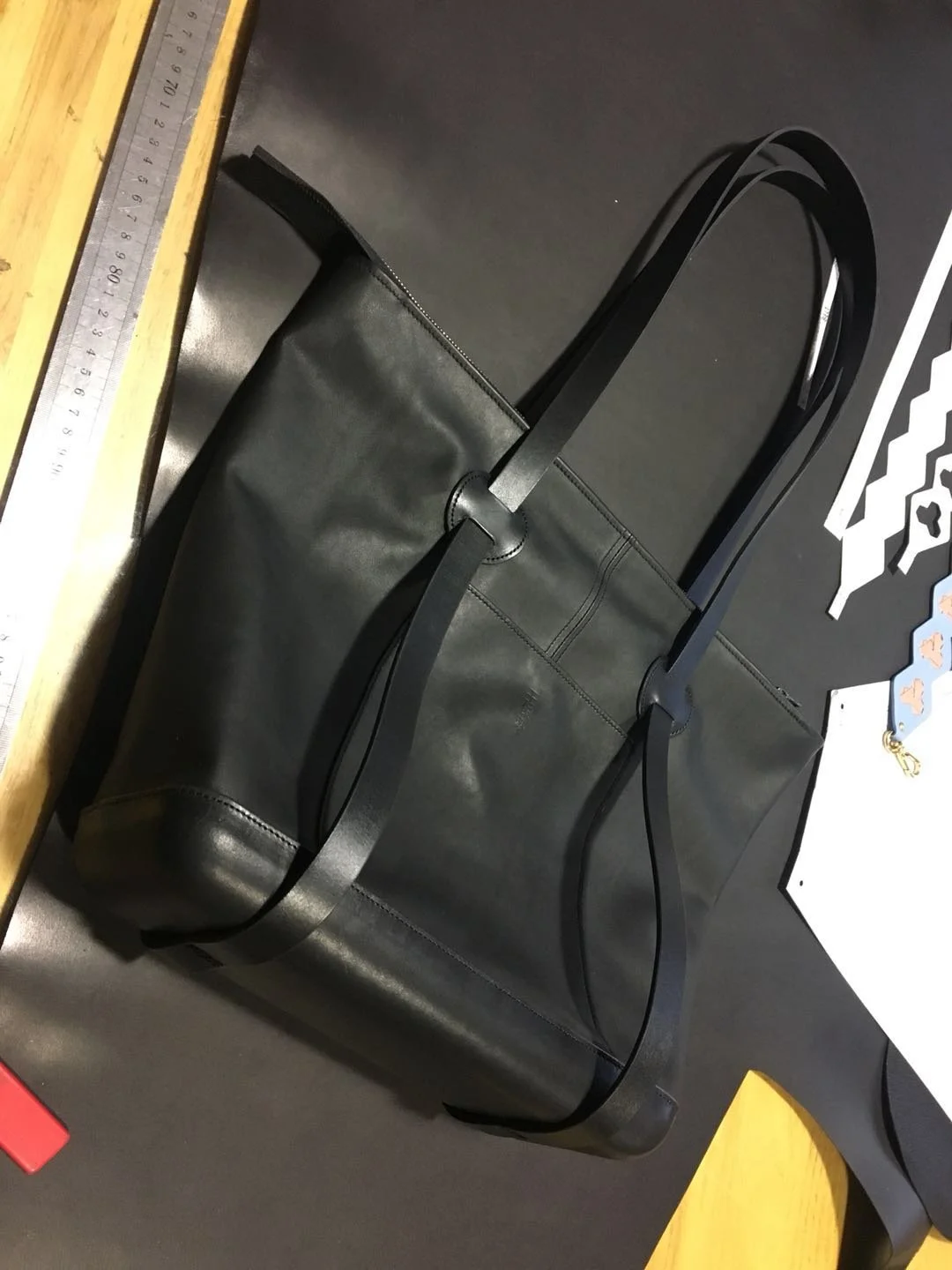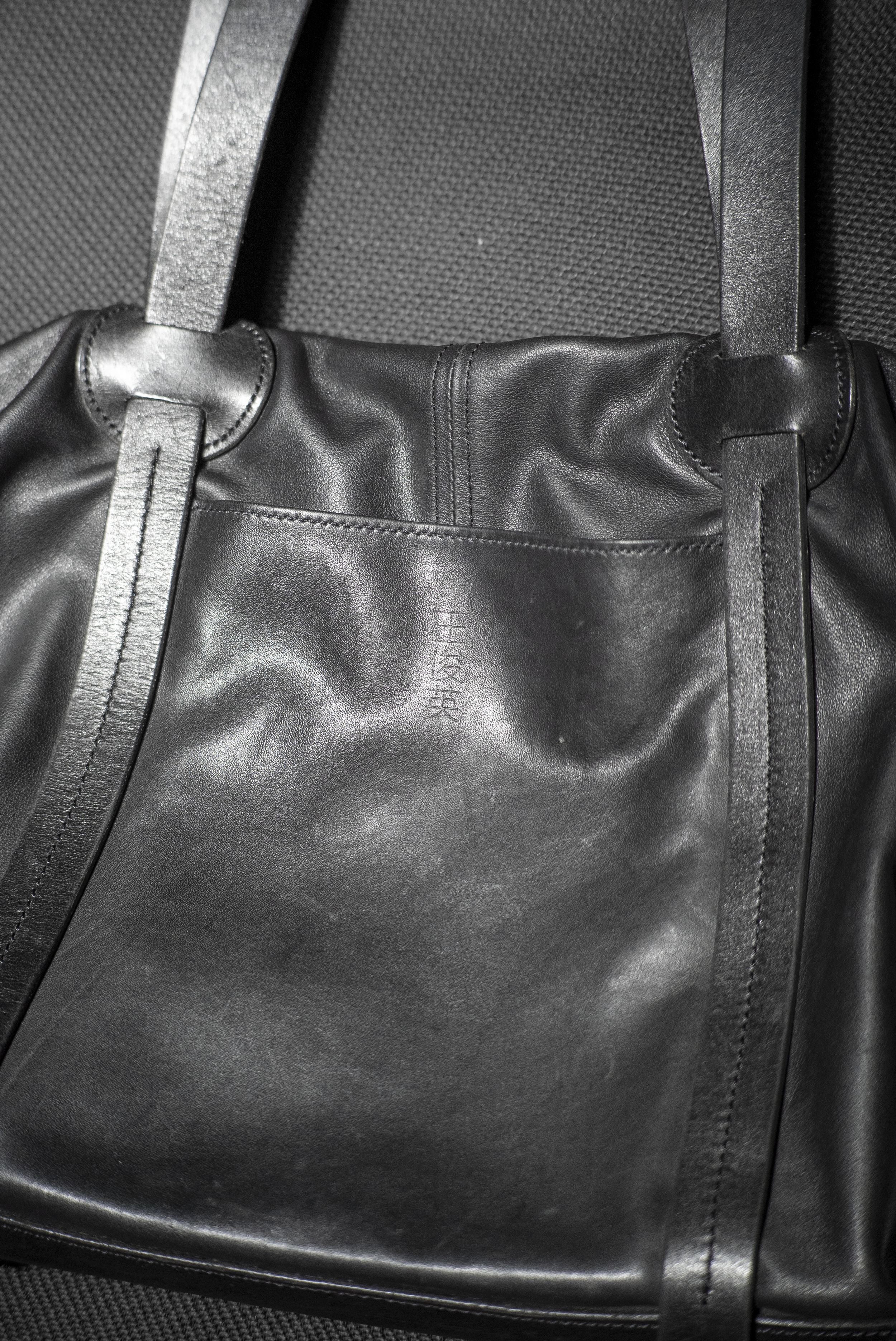 Le sac a maintenant les sangles cousues, passant sous la base du sac. Le logo a été embouti avec le nom personnalisé.