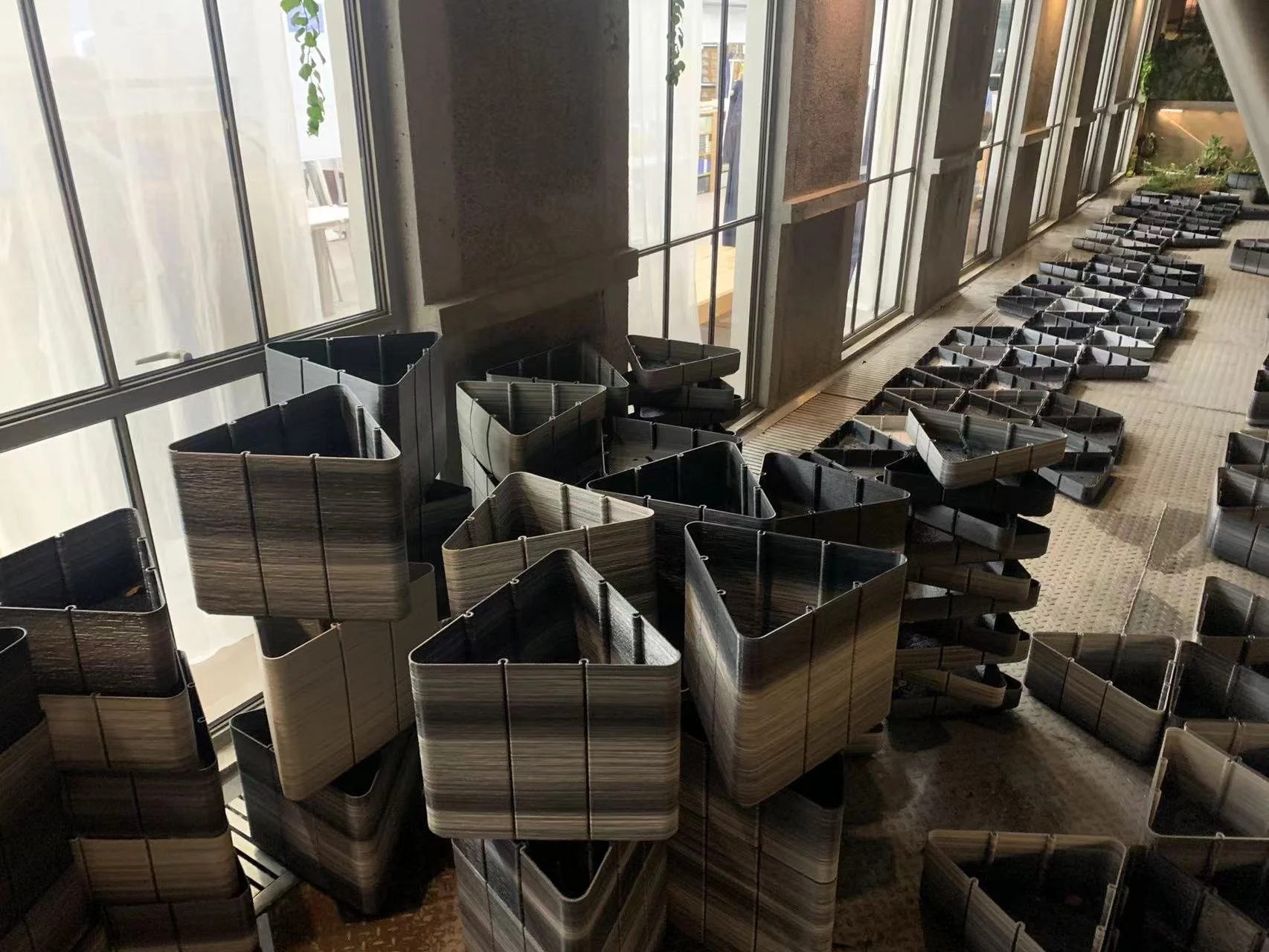 To meet the demand for custom-designed plant containers, it was decided to turn to industrial 3D printing. This eliminates the need for mold making for small production runs, allows for different sizes, and enables our agency to become producers, thus allowing us to fully control the project from design to industrial manufacturing.