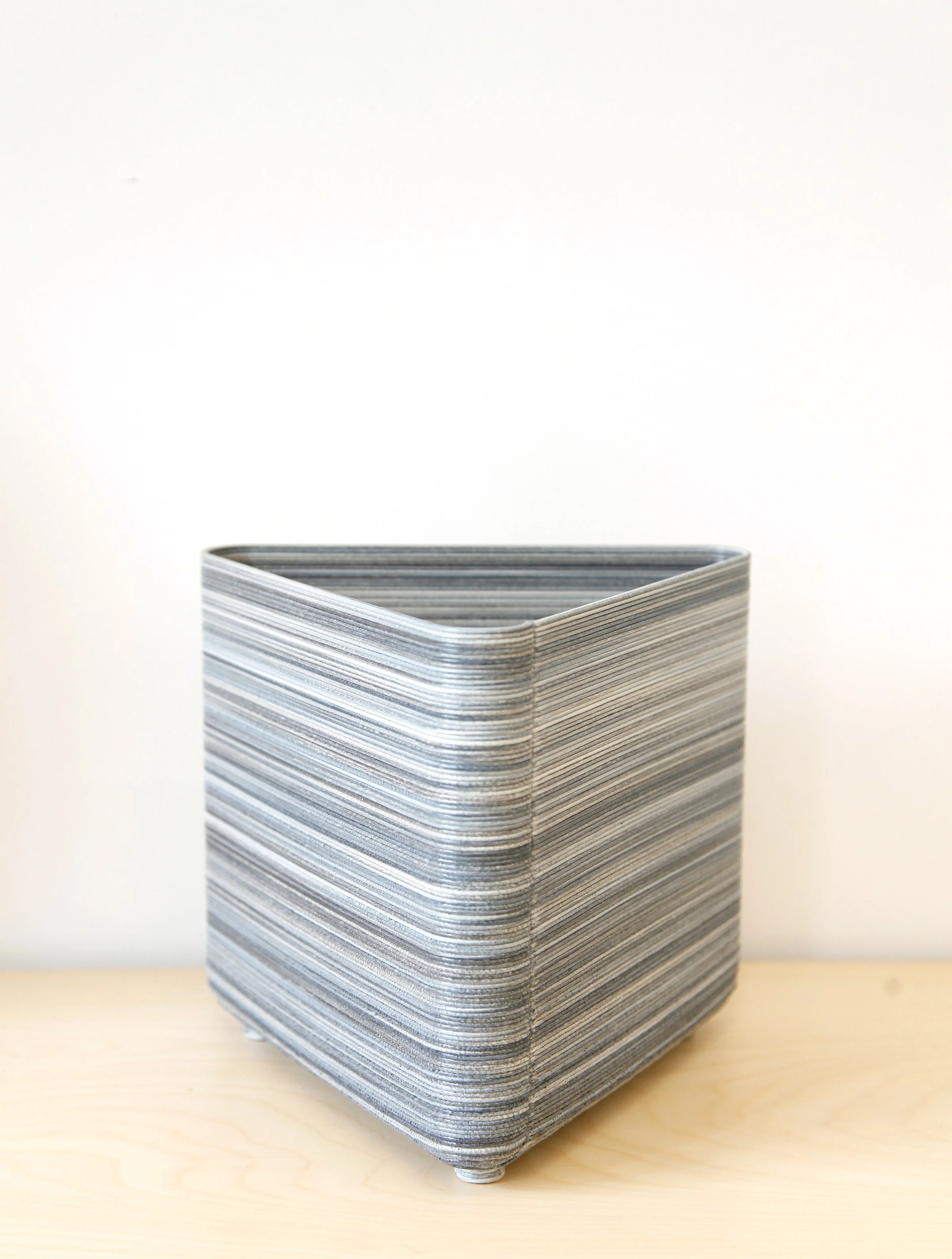 Recycled plastic is more difficult to work with for 3D printing and requires a long phase of trial and error and improvement to achieve the desired aesthetic and functional results.